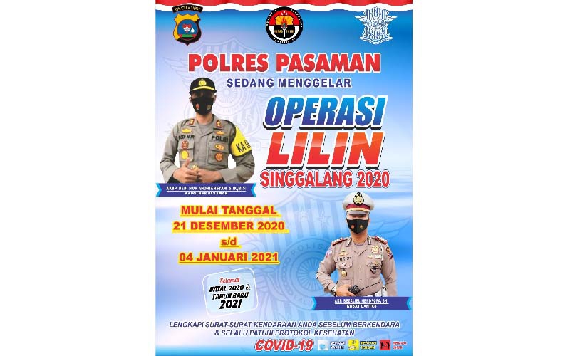 Kapolres Pasaman, melalui Kasat Lantas B. Mendrofa, SH mengatakan Operasi Lilin Singgalang 2020 dilaksanakan selama 15 hari, mulai tanggal 21 Desember 2020 s/d 4 Januari 2021.