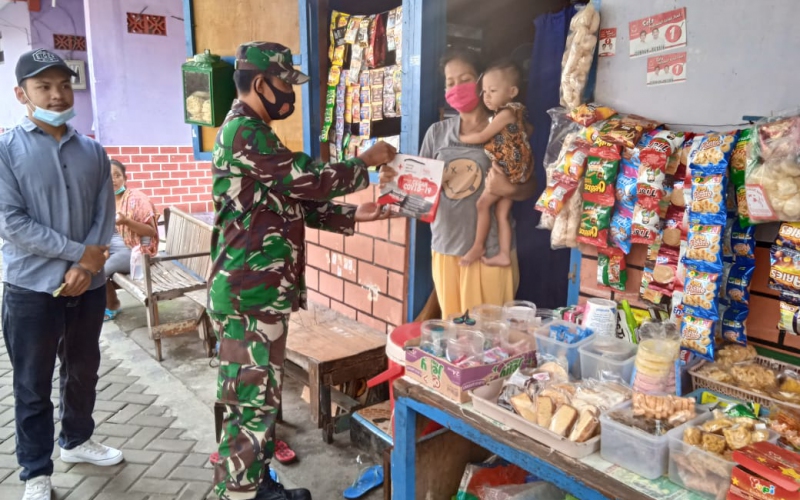 Babinsa Kelurahan Sewu Koramil 04/Jebres Kodim 0735/Surakarta Serka Suryanto dan Sertu Suparno bersinergi dengan Bhabinkamtibmas Aiptu Suwardi bersama Relawan Sibat melakukan langkah pencegahan penularan dan pemutusan mata rantai penyebaran virus corona (Covid-19) dengan membagi-bagikan masker dan sabun kepada warga di RW 8 wilayah Kelurahan Sewu, Sabtu, (23/1/2021).