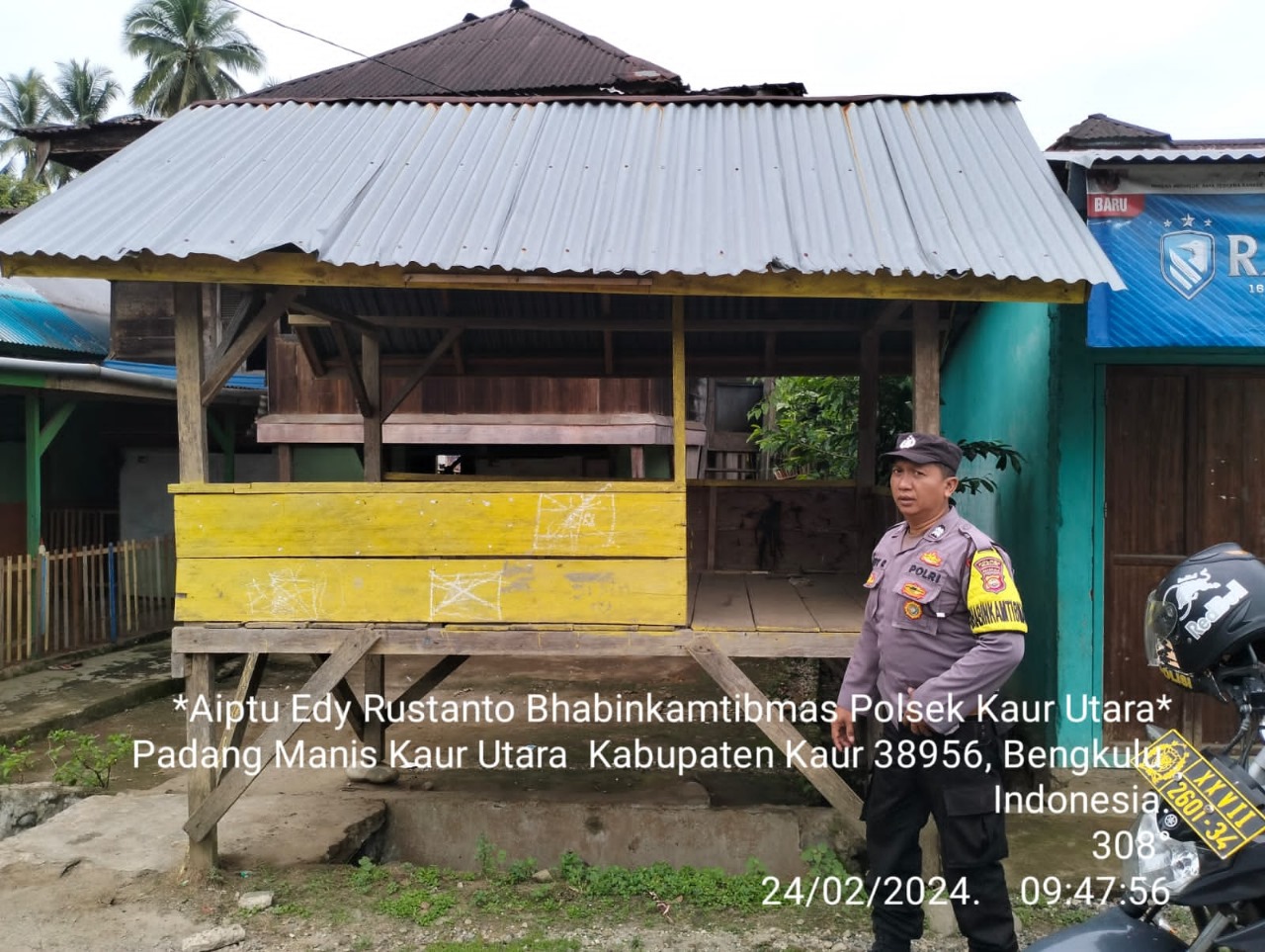 Kaur – Bhabinkamtibmas Polsek Kaur Utara Polres Kaur Polda Bengkulu Aipda B. Van Houten, melaksanakan sambang Desa Binaan dan Cek Poskamling di Kecamatan Kaur Utara Kabupaten Kaur, Sabtu (24/02/2024), Pukul 09.00 Wib.