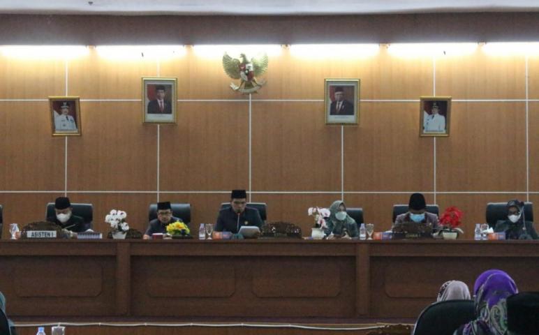 Rapat digelar dalam rangka mendengarkan pandangan akhir Fraksi – Fraksi terkait tiga usulan Raperda tentang :