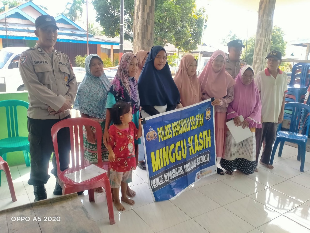 Minggu Kasih kali ini pihak Polsek Seginim menerima 2 (dua) poin harapan yang disampaikan warga ,Terimakasih atas kehadiran Personil Polsek Seginim di tengah tengah masyarakat, sehingga Memberikan rasa aman dan bisa melaksanakan aktivitas dengan tenang dan menyampaikan saran atau masukan kepada pihak Kepolisian Sektor Seginim agar merazia dan mengamankan anak-anak remaja yang nongkrong dan sampai mabuk-mabukan untuk memberi efek jera, karena masyarakat, orang tua khususnya Ibu-ibu merasa resah dengan pergaulan anak-anak sekarang ini.