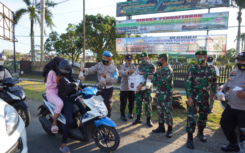 Jemput berkah Ramadhan, bulan penuh berkah, rahmat dan magfiroh ini, prajurit Wijayakusuma Korem 071/Wijayakusuma bersama anggota Polri Polresta Banyumas, bersinergi berbagi Takjil untuk masyarakat.