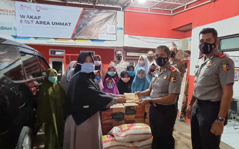 Kegiatan dilanjutkan dengan serah terima bantuan berupa sembako dan uang, dari serdik sespimmen Angkatan 61 kepada pihak yayasan Mizan Amanah.