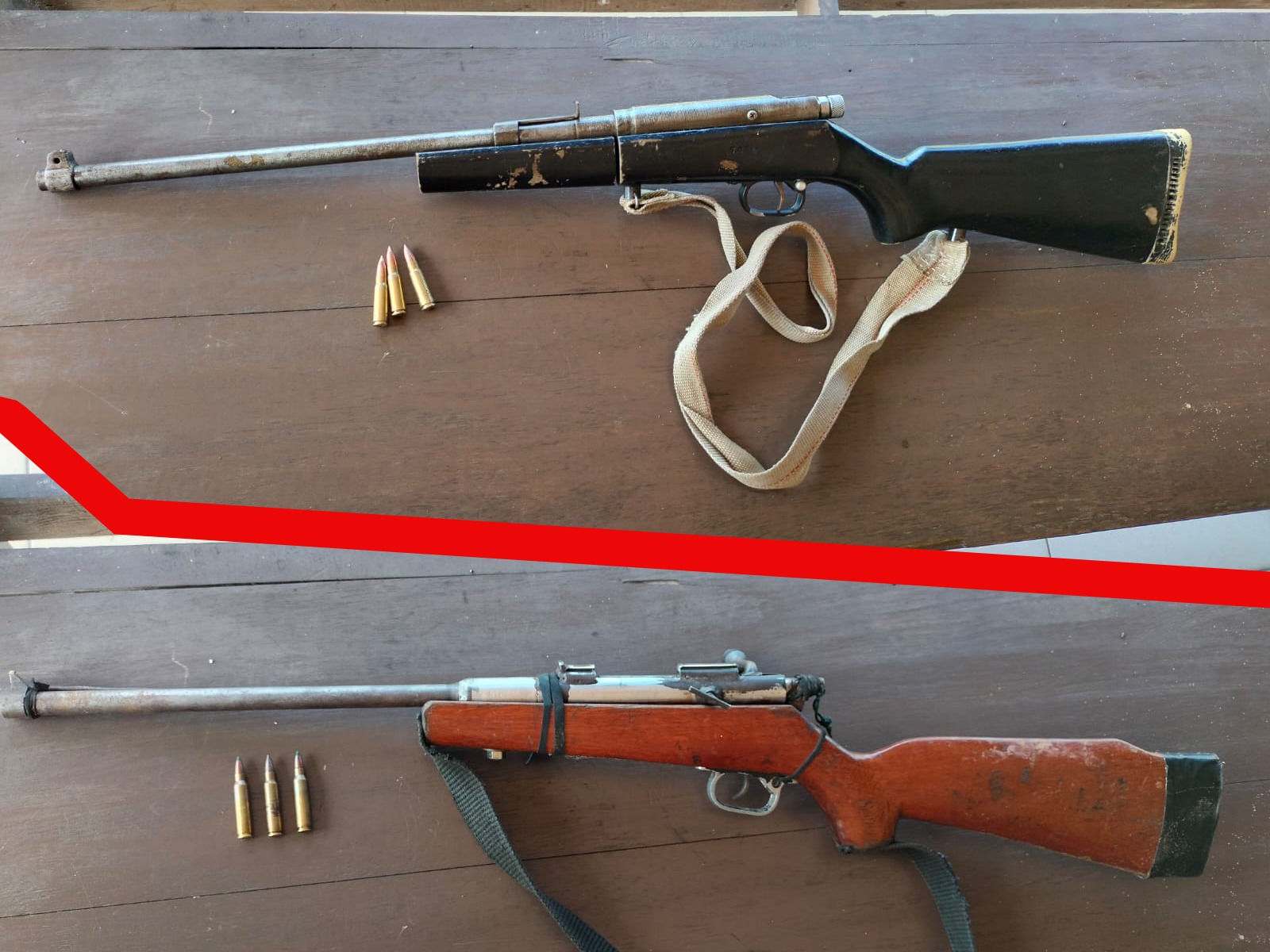 Adapun, rinciannya senapan api laras panjang jenis Mauser bersama 3 butir amunisi dan senapan api laras panjang jenis mauser bersama 3 butir amunisi.