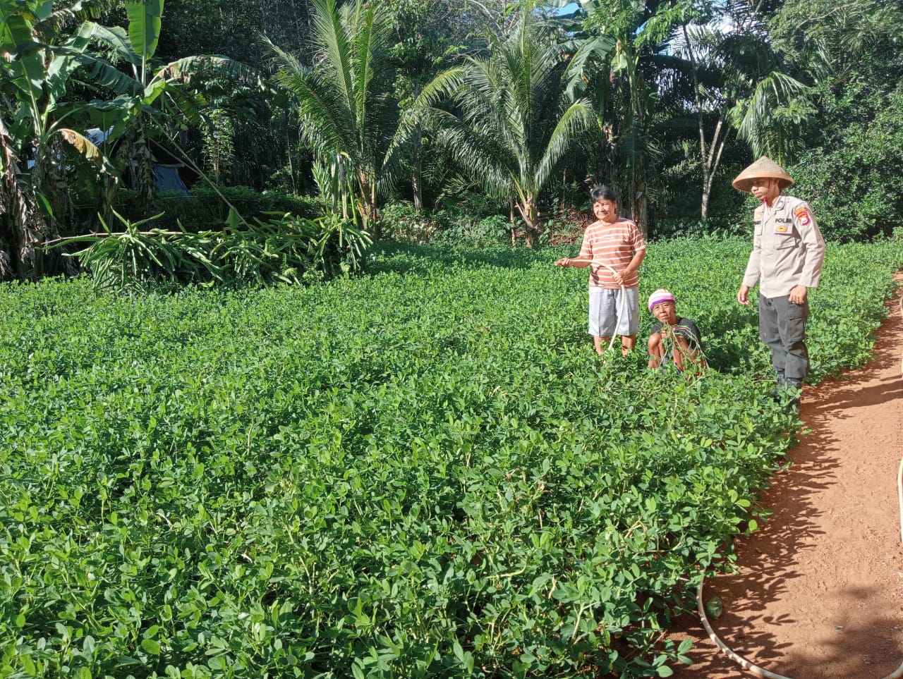 Sambil memberikan motivasi, Brigpol Purwanto mengajak berkomunikasi Dengan Warga Binaanya Yang Memiliki Tanaman kacang tanah di pekarangan rumahnya sembari menanyakan kendala-kendala saat bercocok tanam serta melihat sejauh mana ketahanan pangan di Dusun Air Solok Desa Samban Jaya kecamatan Batik Nau