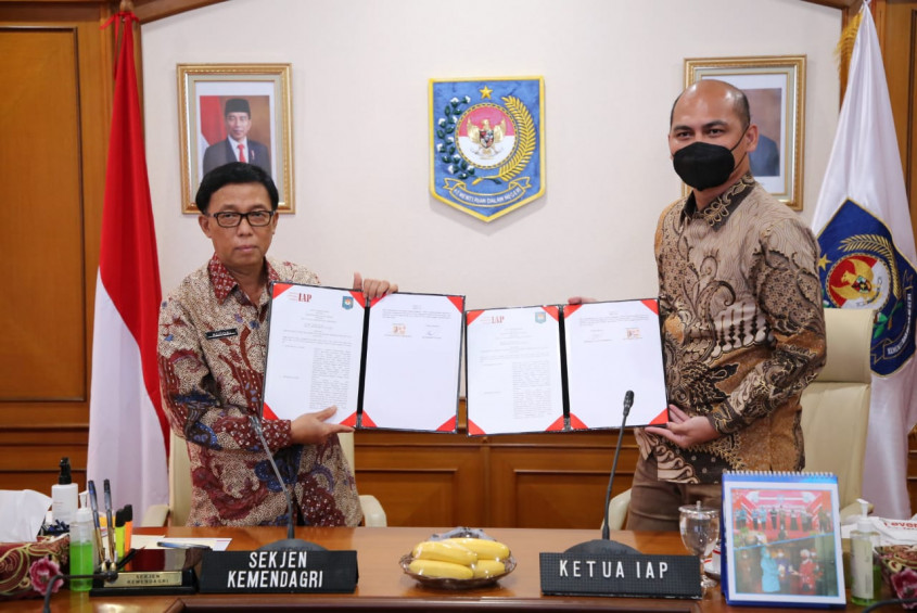 Hudori menyampaikan apresiasinya atas terlaksananya penandatanganan kerja sama tersebut. “Hari ini kita menandatangani nota kesepahaman, jadi nota kesepahaman ini kan bentuk konkret wujud kerja sama, ini kerja sama lembaga dan lembaga, artinya Kemendagri dengan IAP,” ujar Hudori.