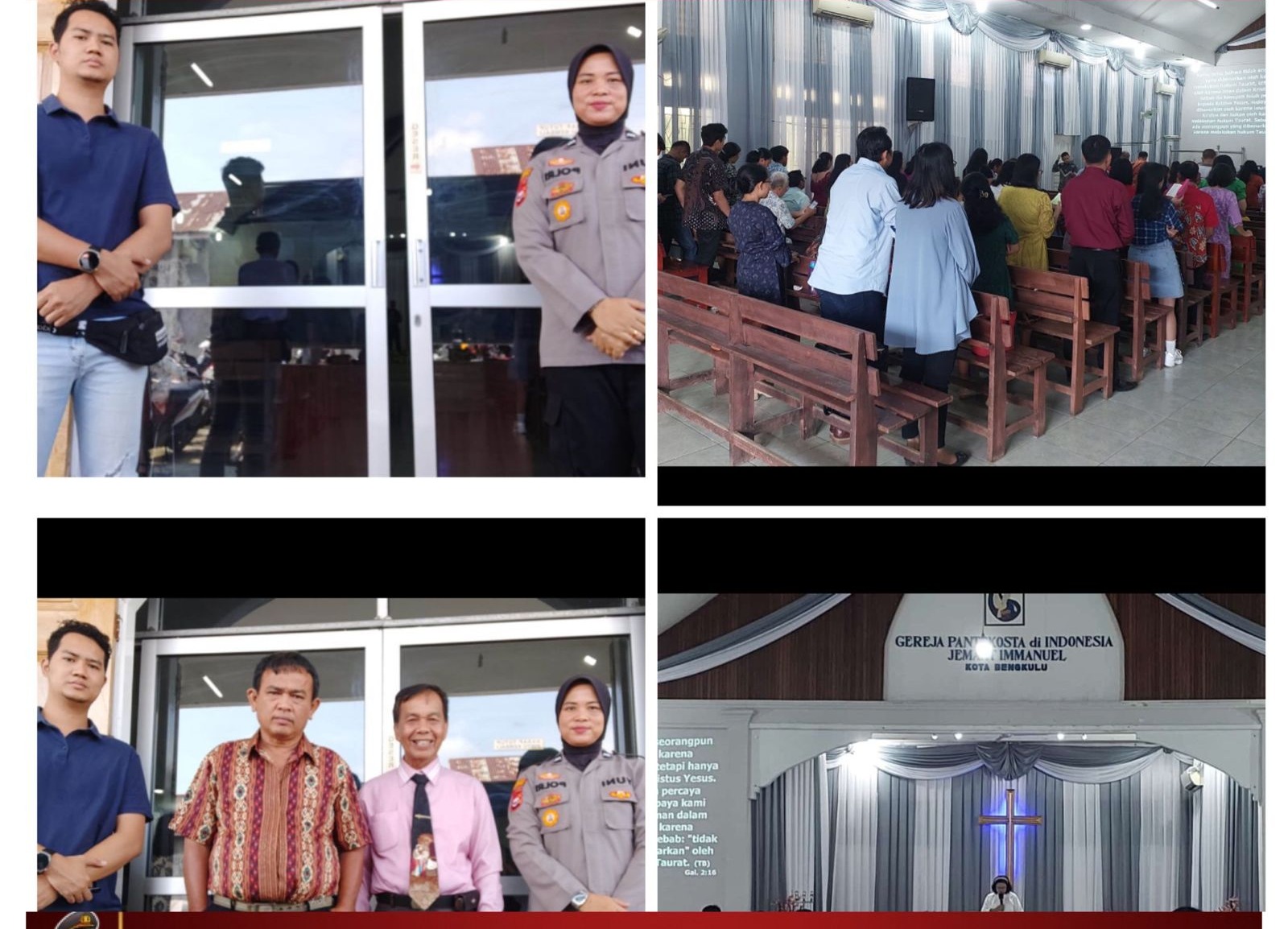 Bengkulu – Personel Polsek Gading Cempaka Polresta Bengkulu Polda Bengkulu, melaksanakan kegiatan pengamanan ibadah Mingguan di Gereja Pantekosta Indonesia di jalan Adam Malik Kelurahan Cempaka Permai Kecamatan Gading Cempaka Kota Bengkulu, Minggu (25/6/2023).