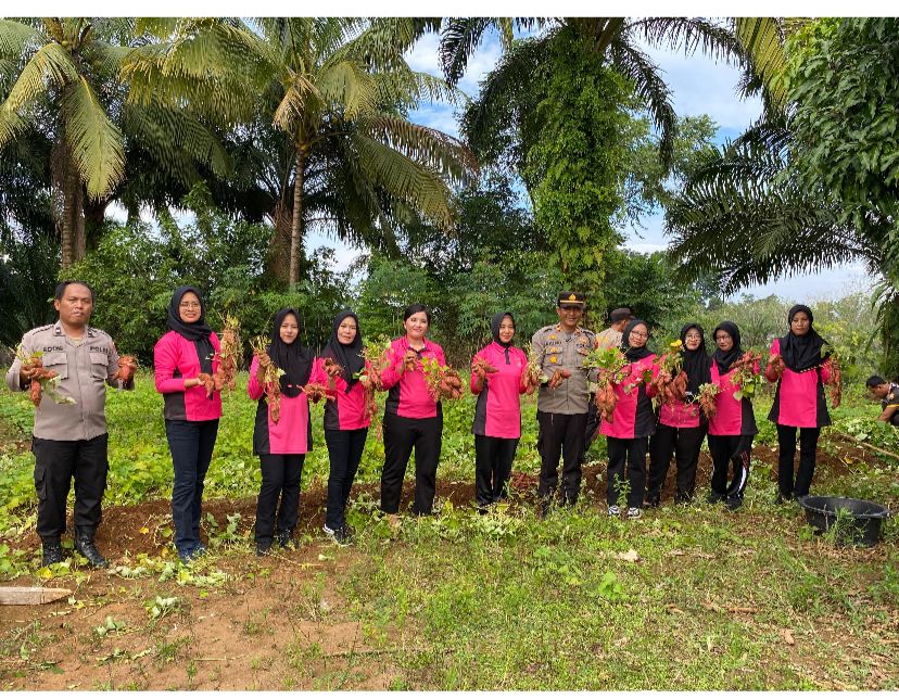 Kapolsek Padang Jaya memimpin langsung giat panen hasil program ketahanan pangan, Personil Polsek Padang Jaya beserta Bhayangkari bersama-sama dengan semangat melaksanakan panen ubi jalar dan ikan lele.