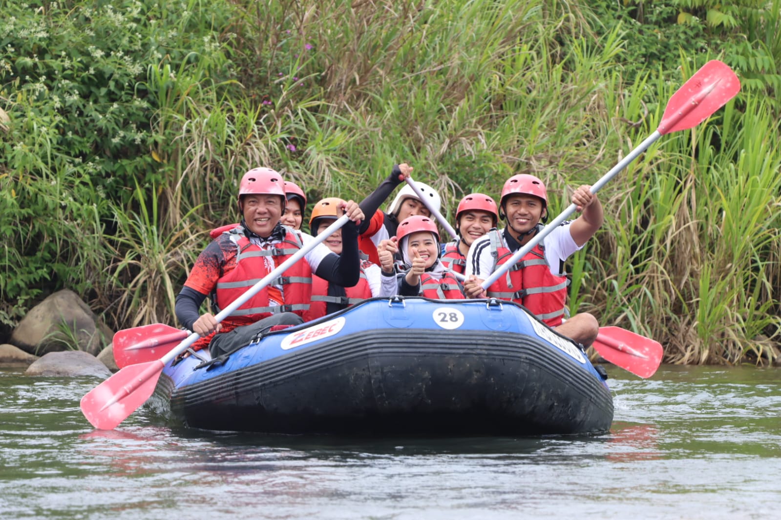 “Ada 14 unit perahu karet yang dilibatkan dalam wisata Arum Jeram ini, dengan isi setiap perahu 6 orang,” jelas Syaiful Anwar.