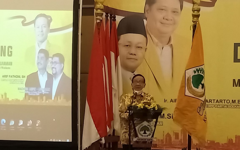 Di hadapan ratusan kader Partai Golkar Jatim dan Surabaya, Tokoh Nasional ini berorasi di Hotel Wyndham untuk Paslon MAJU. Menurut dia, Partai Golkar sudah melakukan berbagai persiapan-persiapan yang cukup jauh dan matang. Termasuk dalam Pilkada di Surabaya.