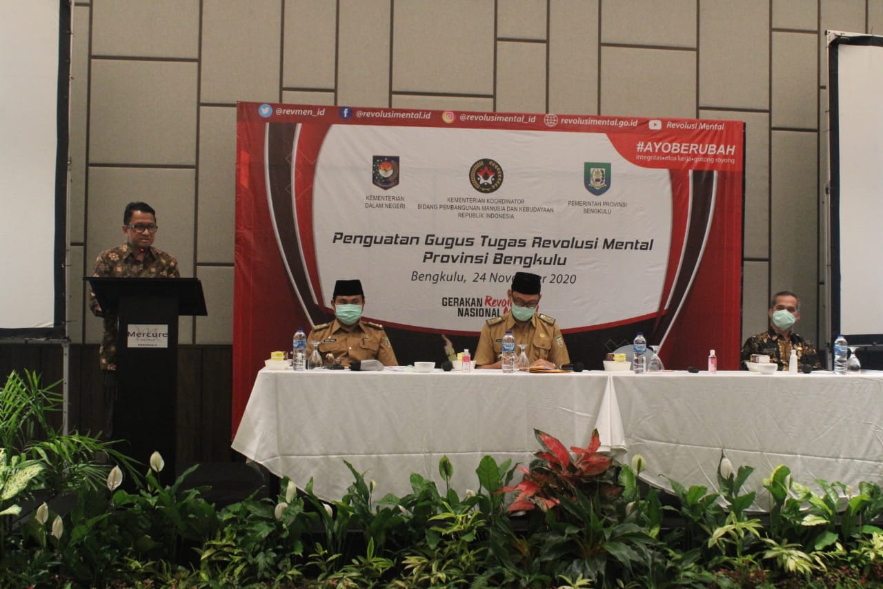 “Di sini kita ucapkan terima kasih kepada Asisten Deputi Revolusi Mental Kemenko PMK Alfredo Sani Fenat yang sudah berkenan hadir memberikan materi pada kegiatan ini. Mudah-mudahan Pemda Provinsi Bengkulu akan menghasilkan program rencana aksi GNRM Tahun 2021, untuk mewujudkan gerakan revolusi mental yang berintegritas dan bermoral,” pungkasnya.