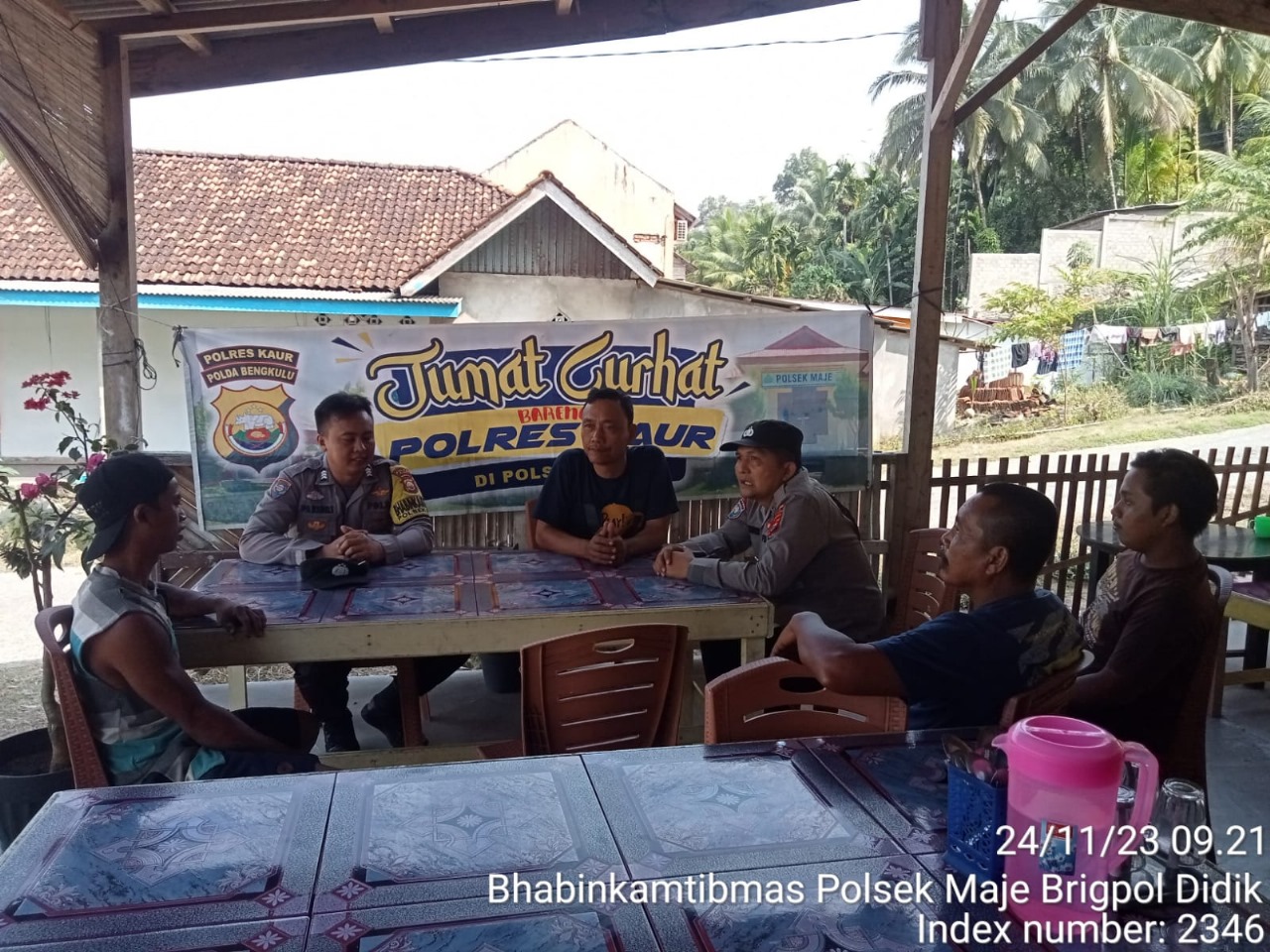 Kaur – Polsek Maje Polres Kaur Polda Bengkulu, melaksanakan kegiatan Jumat Curhat di Desa Linau Kecamatan Maje Kabupaten Kaur, Jumat (24/11/2023).