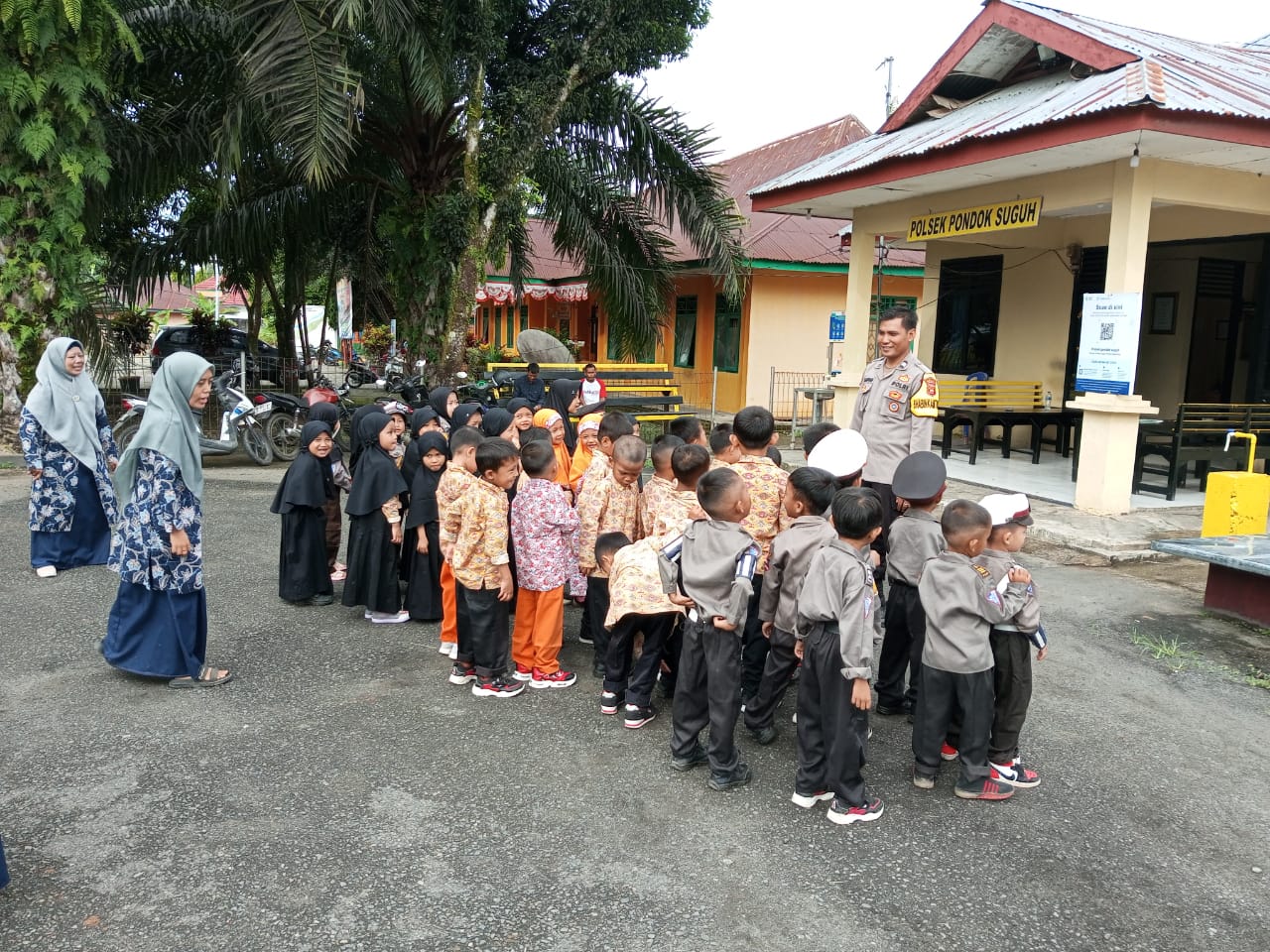 Tidak hanya memperkenalkan ruangan dan peralatan yang digunakan Polisi dalam bertugas, Kapolsek Pondok Suguh dan personel juga memberikan pengetahuan kepolisian sejak dini serta mengenalkan bahwa polisi bukan untuk ditakuti melainkan polisi sebagai Pelindung, pengayom dan pelayan masyarakat.