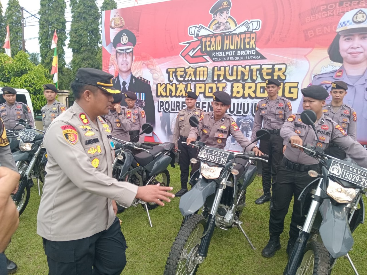 Kapolres Bengkulu Utara AKBP Lambe Patabang Birana, S.I.K, M.H, menerangkan pembentukan Team Khusus “Team Hunter Knalpot Brong” sebagai upaya menjaga ketertiban umum terlebih saat ini sedang berlaku Operasi Mantab Brata Nala dalam rangka pengamanan pemilu 2024.