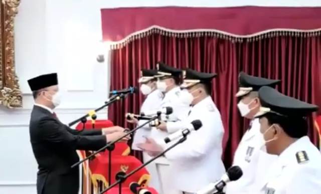 BENGKULU – Berselang sehari dilantik Presiden RI sebagai Gubernur Bengkulu, Dr. H. Rohidin Mersyah, MMA langsung melakukan pelantikan terhadap 7 pasang Bupati dan Wakil Bupati terpilih hasil Pilkada 9 Desember 2020 lalu.