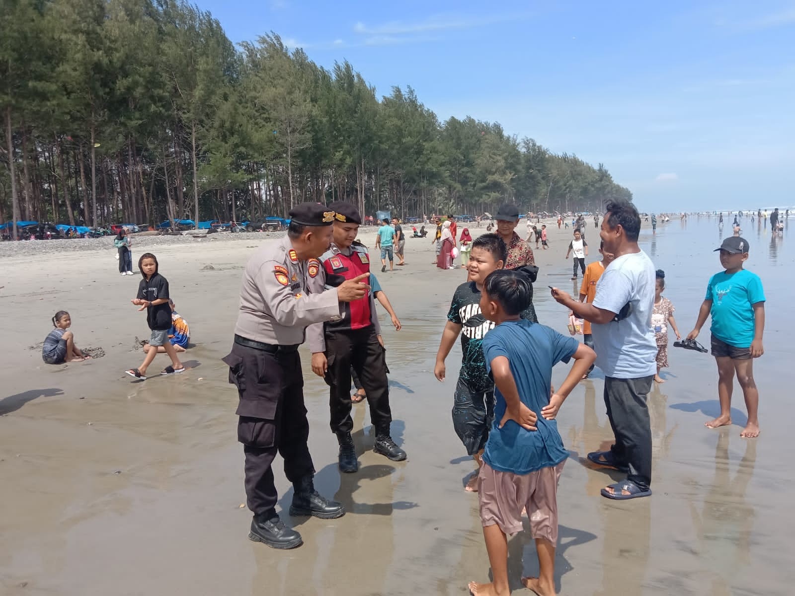 “Kami hadir untuk ciptakan perasaan aman dan nyaman kepada para pengunjung di tempat wisata Pantai Pandan Wangi,” ungkap AKP S.M.O Aritonang, S.H., M.H.