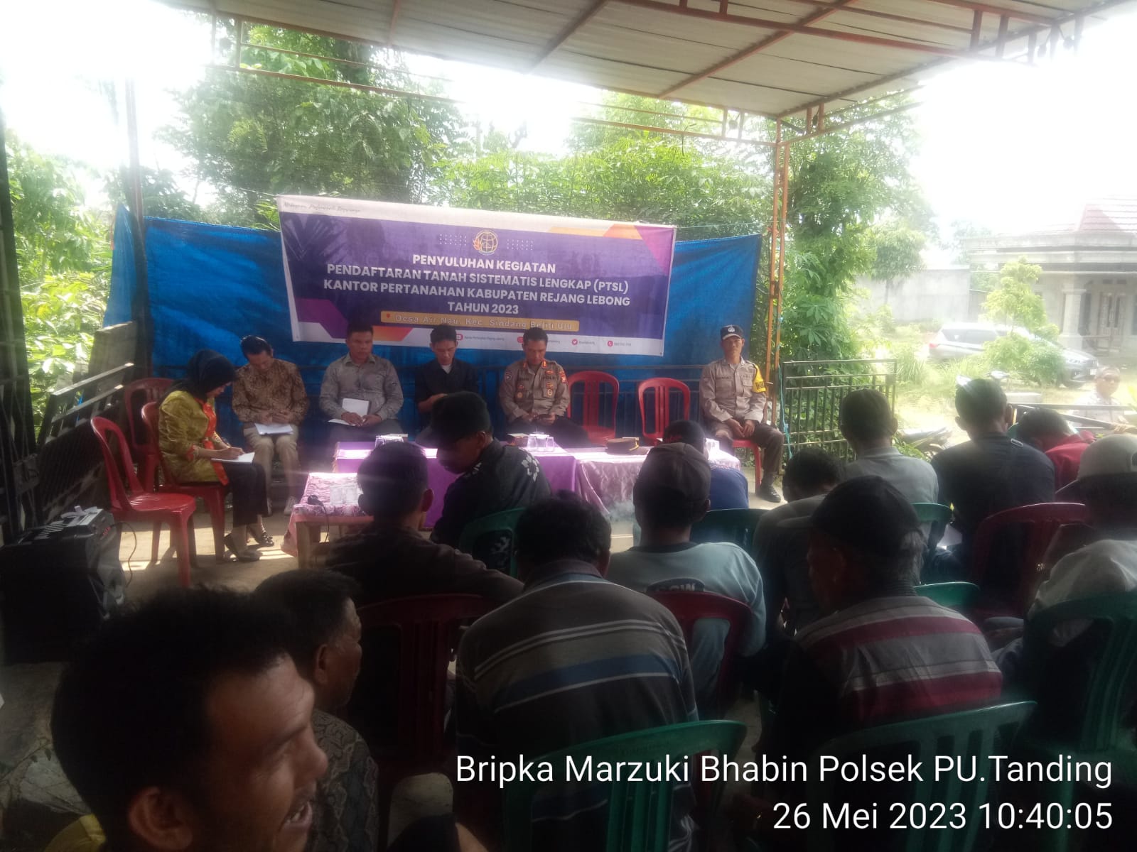 Rejang Lebong – Bhabinkamtibmas Polsek Padang Ulak Tanding menghadiri giat PTSL (Pendaftaran Tanah Sistematis Lengkap) tahun 2023 di desa Air Nau Kecamatan SBU Kabupaten Rejang Lebong, Jumat (26/05/2023).