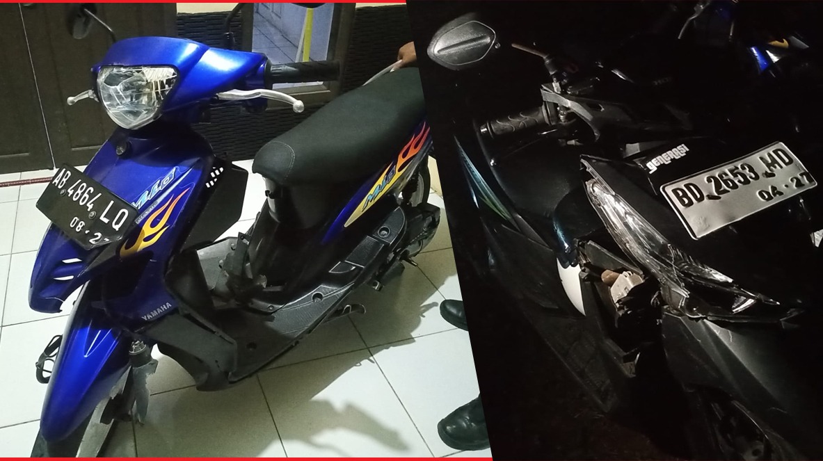“Untuk barang bukti sepeda motor Yamaha Mio AB 4864 LQ dalam kondisi Rusak ringan dibagian bodi depan