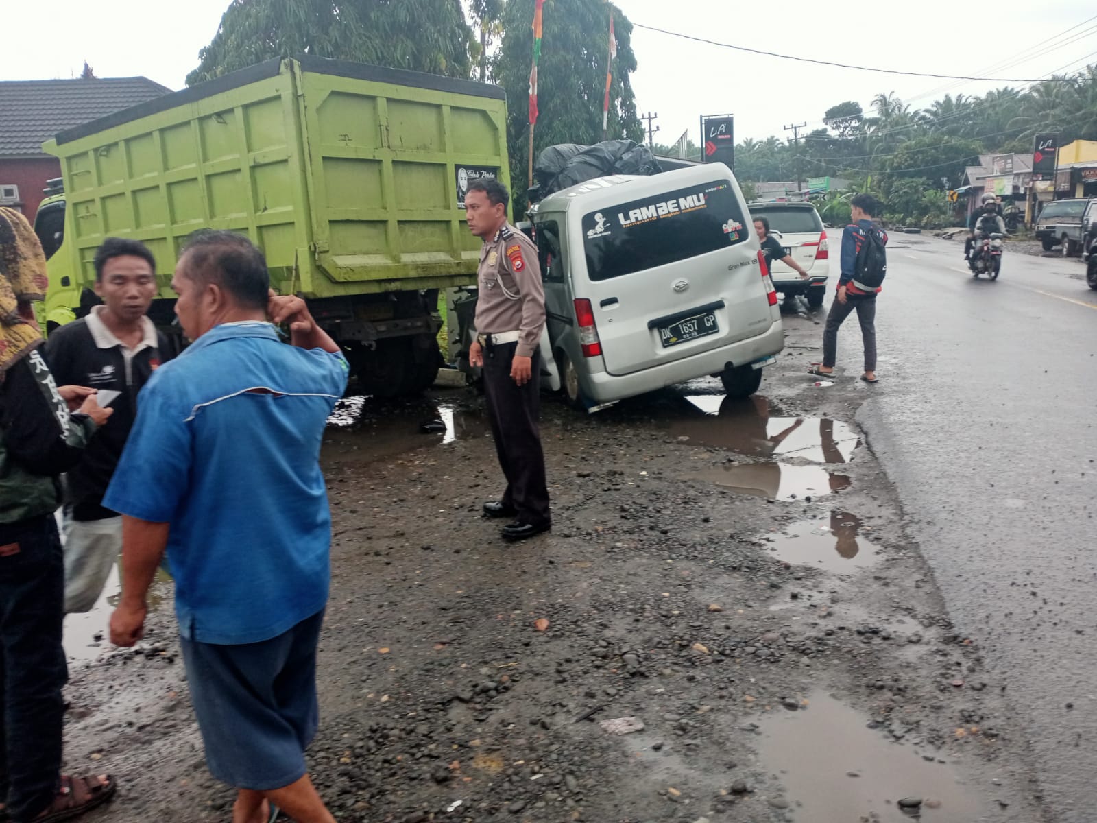 Pada saat itu pula ada satu unit mobil dump truck hino dutro no.Reg. BD 8035 SU yg sedang parkir dan karena jarak yang sudah cukup dekat Mobil daihatsu granmax langsung menabrak bak belakang mobil dump truk hino Dutro tersebut.