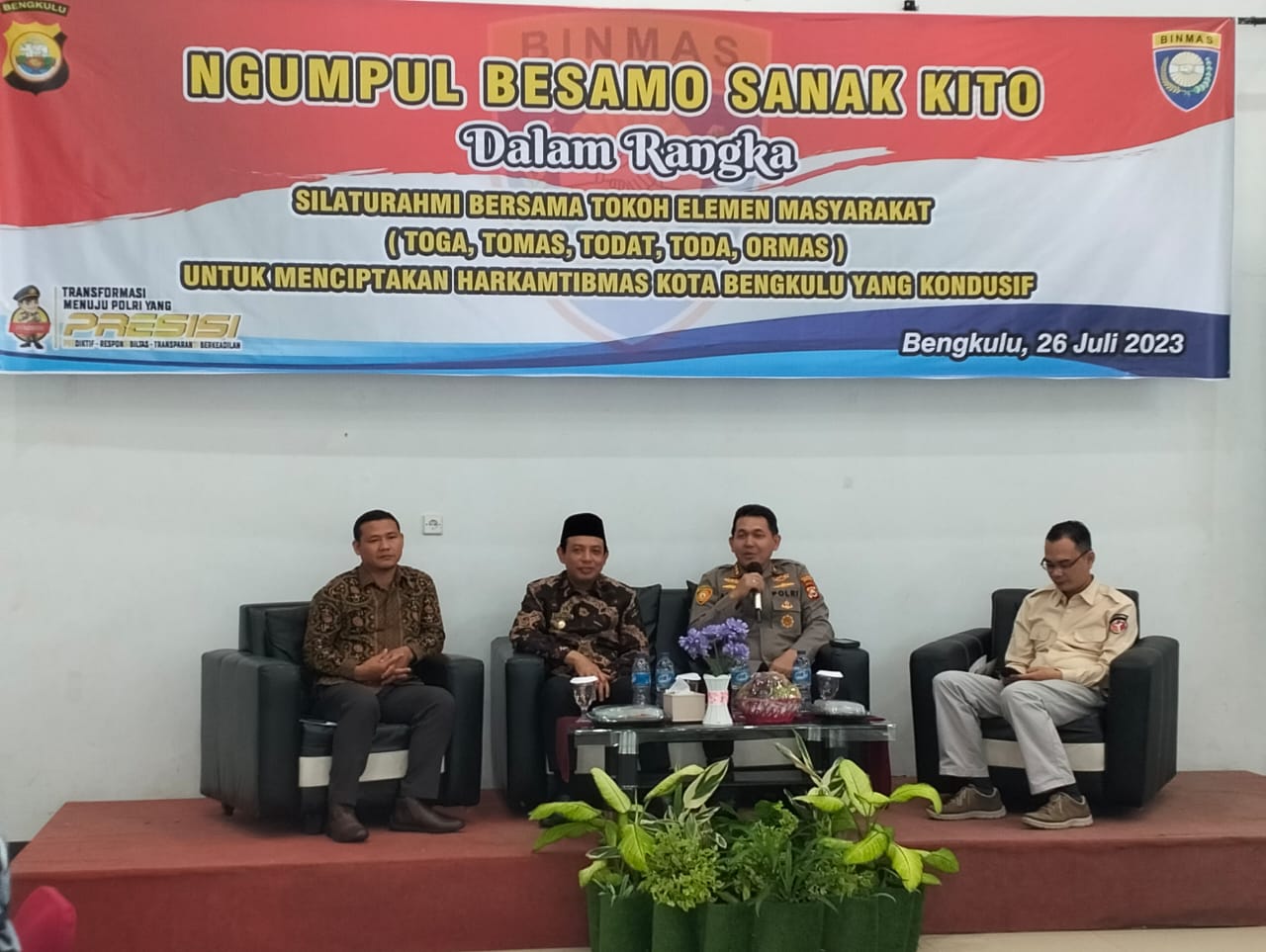 BENGKULU – Ketua KPU Kota Bengkulu, Rayendra Pirasad mengapresiasi gelaran Focus Group Discussion (FGD) yang diselenggarakan Polresta Bengkulu dengan tema “Ngumpul Besamo Sanak Kito dalam rangka Silahturahmi Bersama Tokoh Elemen Masyarakat untuk Menciptakan Harkamtibmas Kota Bengkulu”.