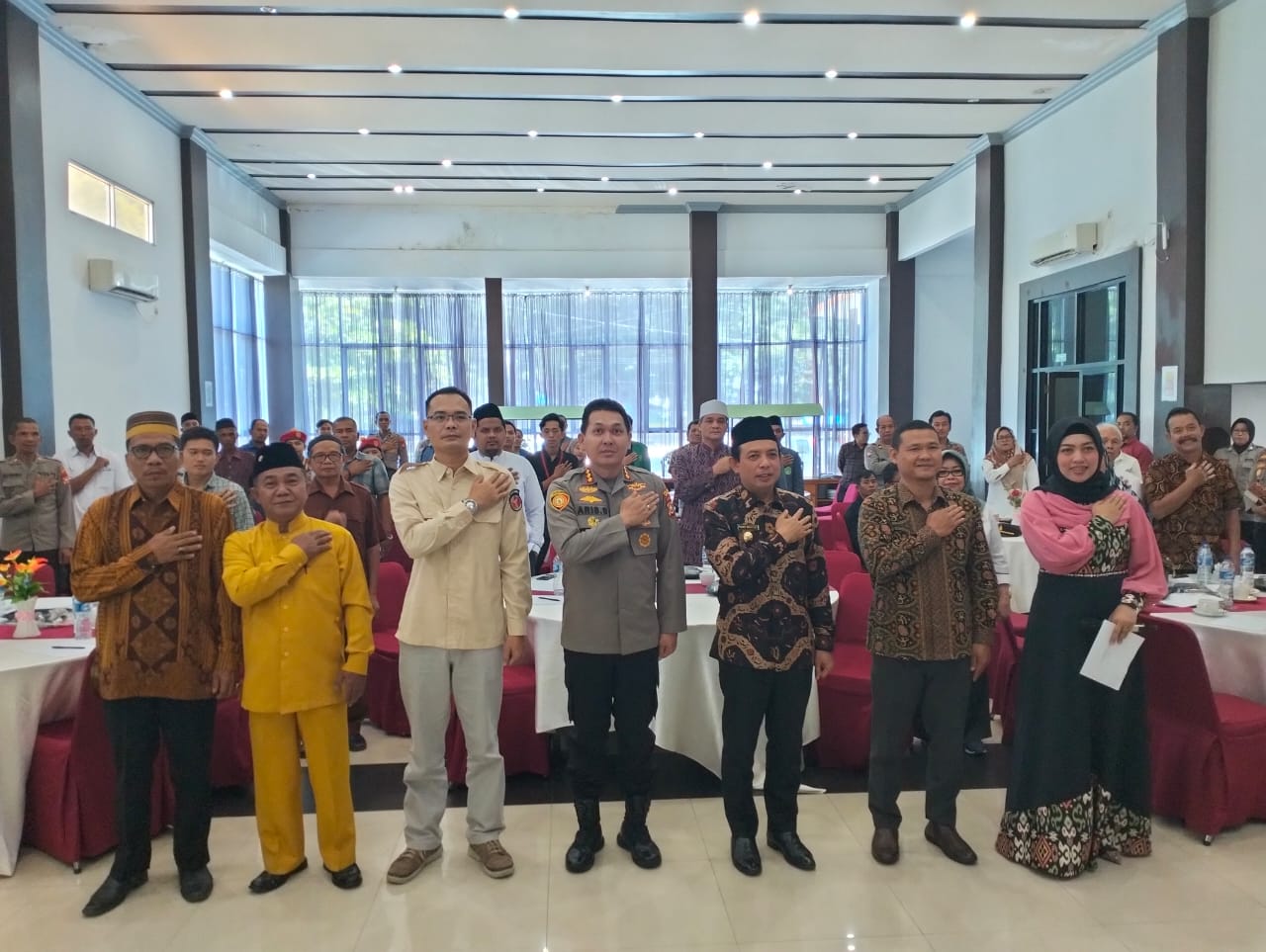 Hadir dalam kegiatan ini seluruh elemen masyarakat, Wakil Walikota Bengkulu Dr. Dedy Wahyudi, SE, MM, Kasat Intelkam Polresta Bengkulu Kompol Rufaicen, SH, Ketua Bawaslu Kota Bengkulu Mico Yudhistira, MH, Ketua Kesbang Pol Dra. Zuliyati, Ketua NU H. Riskan Efendi Syahbudin M. Pd, Ketua Muhammadiyah Fazrul Hamidy, serta para tokoh masyarakat, tokoh agama, tokoh adat, ketua OKP, LSM, Ormas, Ormawa serta BEM Kota Bengkulu.