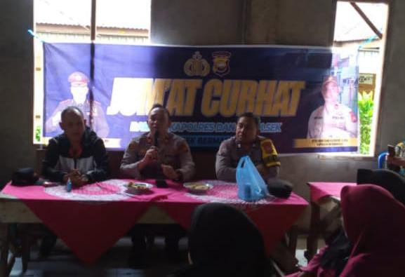 Disampaikan Kapolsek, kegiatan Jum’at Curhat ini dilaksanakan guna mendengar langsung permasalahan atau keluhan yang dirasakan baik mengenai Sitkamtibmas maupun permasalahan lain secara menyeluruh oleh lapisan Masyarakat sampai ke wilayah-wilayah tingkat desa.