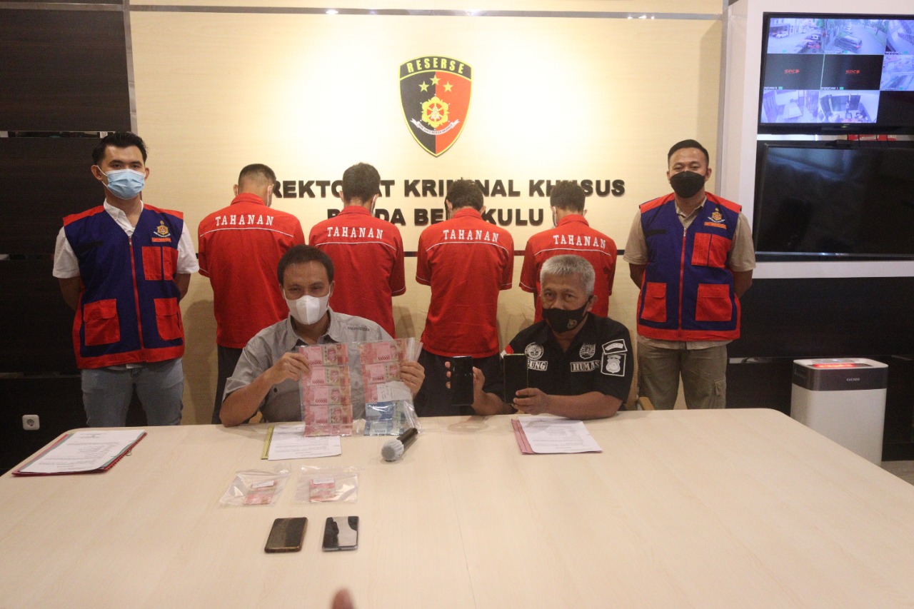 Bengkulu.Siberindo.co – Penyidik Subdit III Ditreskrimsus Polda Bengkulu menetapkan 4 orang sebagai tersangka dalam operasi tangkap tangan (OTT) yang digelar pada Jumat (24/9/2021) di depan BRI Unit Pondok Kelapa Kabupaten Bengkulu Tengah. Keempatnya adalah An (37) Kepala Dusun I Desa Air Napal, kemudian Ih (35) Kepala Dusun II Desa Air Napal, kemudian SM (40), Kasi Pemerintahan Desa Air Napal dan LS (42) yang menjabat sebagai Sekdes Air Napal Kecamatan Bang Haji Kabupaten Bengkulu Tengah.
