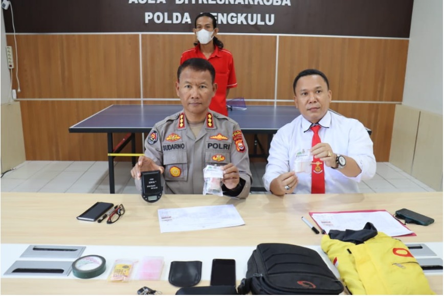 Dalam Konferensi Pers yang digelar Senin (26/09/2022) Kabid Humas Polda Bengkulu Kombespol. Sudarno, S. Sos, MH yang didampingi oleh Kasubdit III DitresNarkoba Polda Bengkulu Kompol. Manogi Simare-Mare mengungkapkan pelaku masuk dalam golongan pengedar. Namun demikian ia menjelaskan pelaku bertugas mengedarkan tanpa mengetahui siapa yang memberikan barang haram tersebut serta uang hasil penjualan langsung diterima oleh bandar.