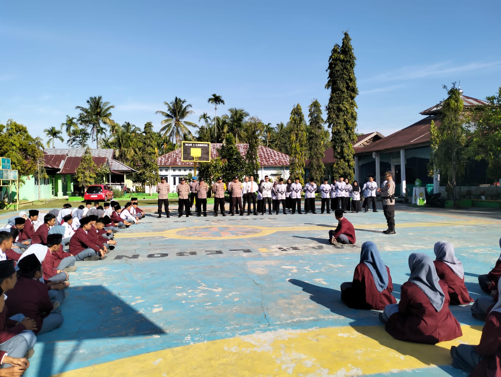 Lebong – Kapolsek Lebong Selatan Polres Lebong Polda Bengkulu, Iptu Kuat Santoso, menjadi pembina upacara pada upacara gabungan di MAN I Lebong, Desa Talang Liak, Kecamatan Bingin Kuning, Kabupaten Lebong, Senin (25/9/2023).