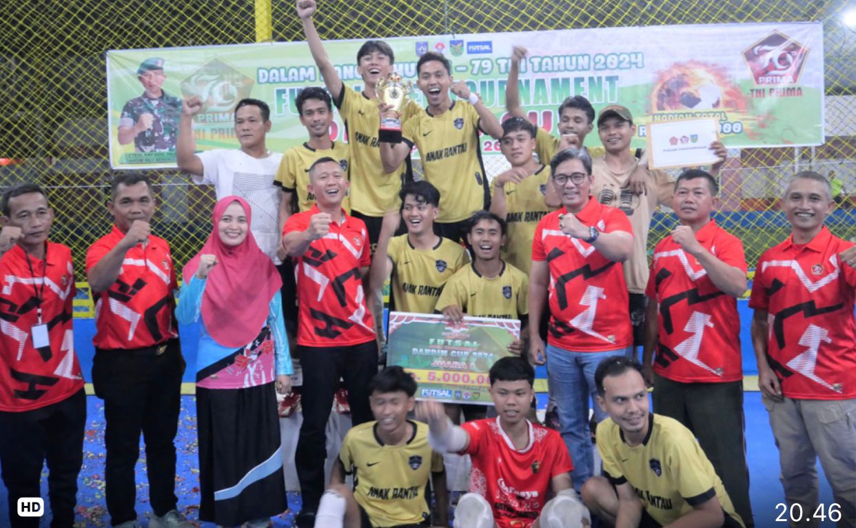 BENGKULU UTARA – Club Anak Rantau Juarai Futsal Open Turnamen Dandim 0423 Bengkulu Utara 2024. Final pertandingan ini digelar di Saung Gutsal Center, pada Rabu (25/9/2024).