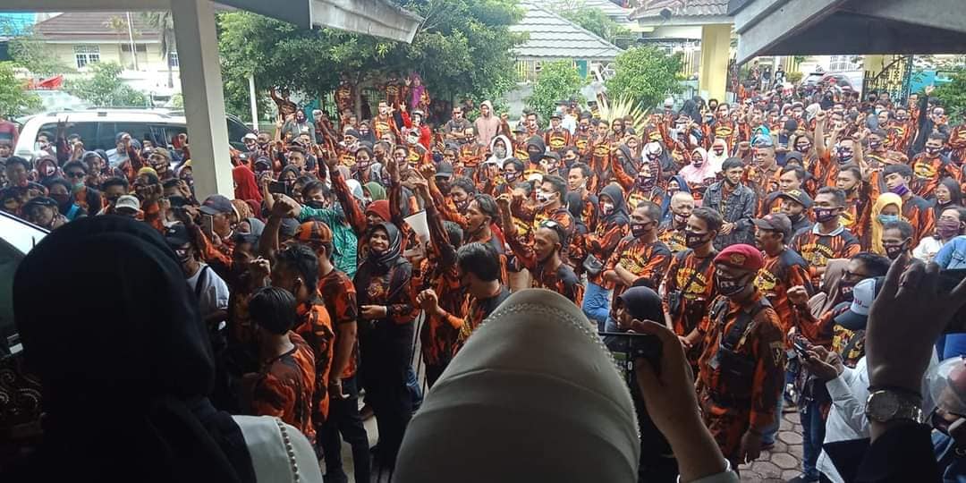 Bengkulu, Siberindo.co – Kedatangan calon Gubernur Bengkulu Agusrin di Bengkulu pada Senin (26/10/2020) pagi, disambut ribuan pendukungnya. Hal tersebut membuat beberapa pihak menyayangkan, sebab tidak mematuhi protokol kesehatan untuk mencegah Covid-19. Selain menyebabkan massa berkerumun, jumlah massa yang besar juga tidak mengindahkan imbauan KPU agar tidak melakukan mobilisasi massa kecuali dalam pertemuan terbatas yang sudah diatur oleh PKPU.