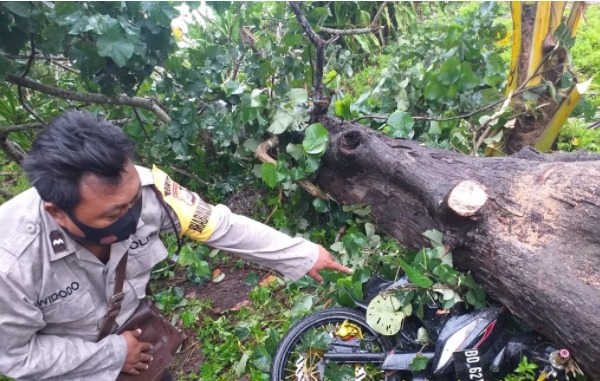 Kabid Humas Polda Bengkulu Kombes Pol Sudarno menjelaskan, peristiwa bermula ketika korban sedang berteduh karena hujan deras dan angin kencang, tiba-tiba saja pohon jenis cemara roboh dan menimpa motor serta tubuh korban.
