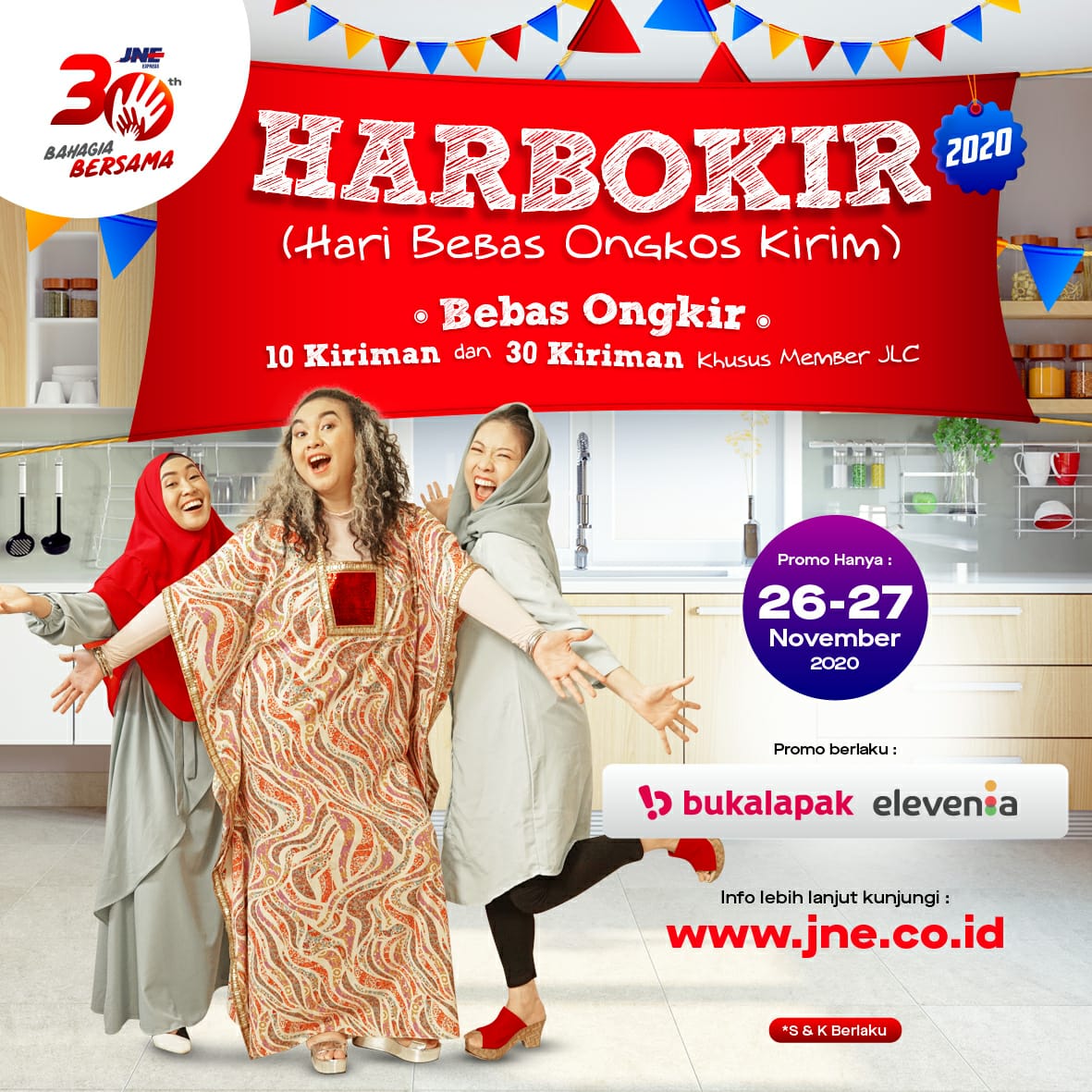 Bengkulu, Siberindo.co – Harbokir atau Hari Bebas Ongkos Kirim yang tiap tahun dirayakan dalam rangka perayaan hari ulang tahun JNE, siap dinikmati kembali oleh seluruh pelanggan setia. Dalam perayaan HUT JNE ke-30 dengan tema “Bahagia Bersama”, Harbokir akan digelar selama dua hari, yaitu pada 26 – 27 November 2020.