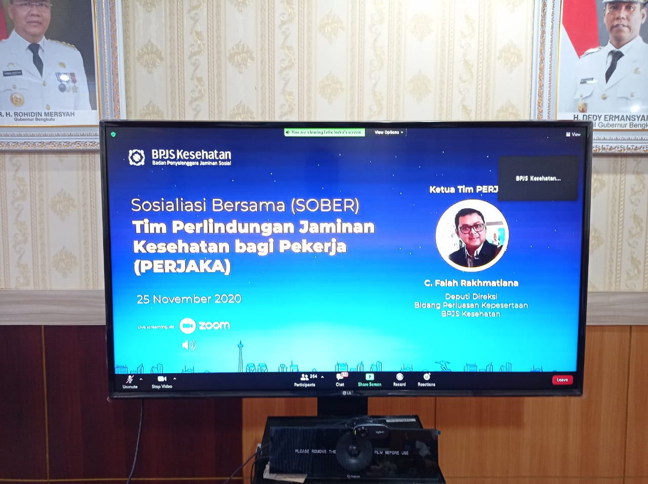 Bengkulu, Siberindo.co – Asisten II Setda Provinsi Bengkulu Yuliswani mengikuti acara sosialisasi Tim Perlindungan Jaminan Kesehatan Bagi Pekerjaan (PERJAKA) digelar BPJS Kesehatan melalui Aplikasi Zoom Meeting.