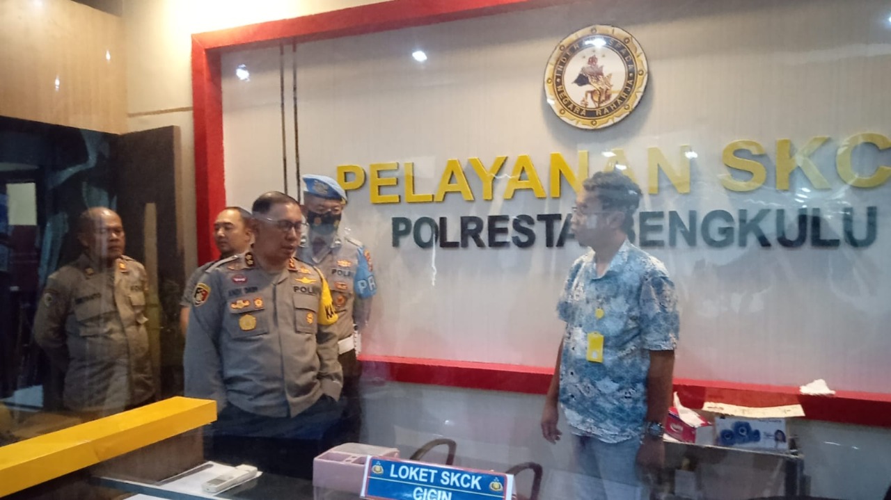 Berlangsung di area Satpas (Satuan Penyelenggara Administrasi SIM) dan Pembuatan SKCK (Surat Keterangan Catatan Kepolisian), kegiatan pengecekan dilakukan dengan melihat secara langsung proses pelayanan serta kelengkapan ruang pelayanan publik yang dimiliki Polresta Bengkulu, terang Kasie Humas AKP Sugiarto dalam keterangan tertulisnya.