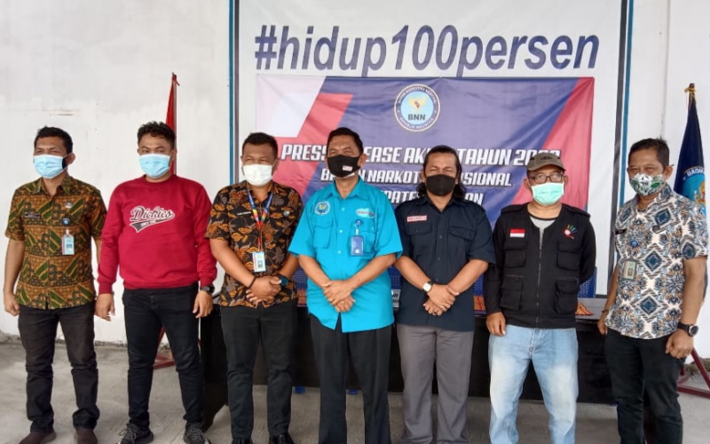 Dengan berpedoman protokol kesehatan, Badan Narkotika Nasional (BNN) Kabupaten Asahan menggelar press release akhir tahun 2020 di halaman kantor BNN Kabupaten Asahan, Rabu (23/12/2020).