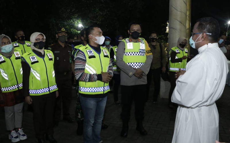 Kapolres Batang AKBP Edwin Louis Sengka bersama Forum Koordinasi Pimpinan Daerah (Forkopimda) Kabupaten Batang memantau situasi perayaan malam Natal.