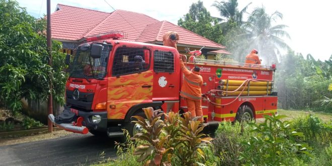 Bengkulu, Siberindo.co – Dalam rangka pencegahan Covid-19, petugas dari Dinas Pemadam Kebakaran Dan Penyelamatan Kota Bengkulu masih terus melakukan penyemprotan disinfektan sebagai salah satu upaya antisipasi penyebaran Covid-19.