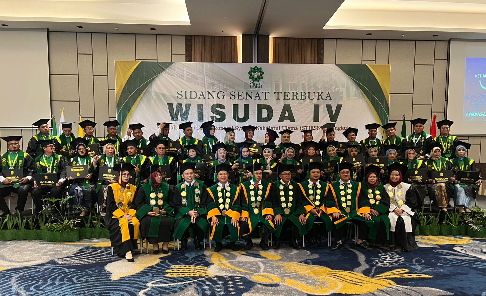 Bengkulu – Sekolah Tinggi Ilmu Ekonomi Syariah Nahdlatul Ulama (STIESNU) Bengkulu mengadakan rapat senat terbuka dalam rangka wisuda angkatan ke-IV di Mercure Hotel Bengkulu, Kamis (26/12/2024). Dalam wisuda ini, 38 lulusan resmi menyandang Sarjana Ekonomi (SE).