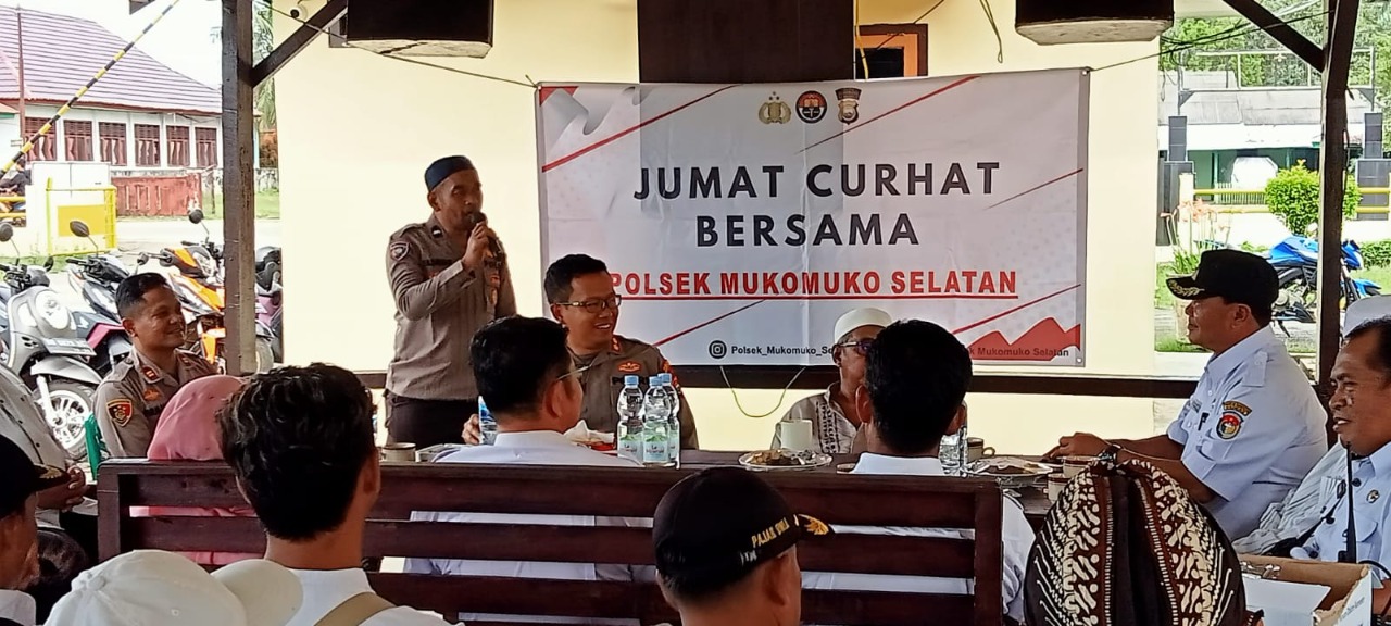 Kapolres Mukomuko AKBP Nuswanto, S.H., S, IK., M. H mengatakan, “pada kegiatan ini kami sampaikan bahwa Jum’at Curhat ini sebagai bentuk silaturahmi dan mendengarkan langsung curhat masyarakat tentang Kamtibmas yang ad di wilayah Mukomuko Selatan ini,”.