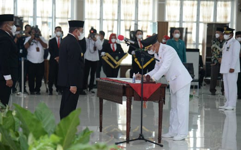 Puncak gelaran pilkada serentak yang dilaksanakan tahun lalu, hari ini, Jumat (26/02/2021), dilaksanakan pelantikan Bupati Dan Wakil Bupati terpilih masa jabatan 2021-2024 yang telah menyelesaikan seluruh tahapan pilkada 2020 lalu. H. Surya, B.Sc dan Taufik Zainal Abidin, S.Sos, M.Si selaku Bupati dan Wakil Bupati Asahan terpilih bersama beberapa Kepala Daerah terpilih lainnya se-Sumatera Utara ikuti acara pelantikan yang diselenggarakan di Aula Tengku Rizal Nurdin Kantor Gubsu, Jalan Sudirman No.41 Medan.