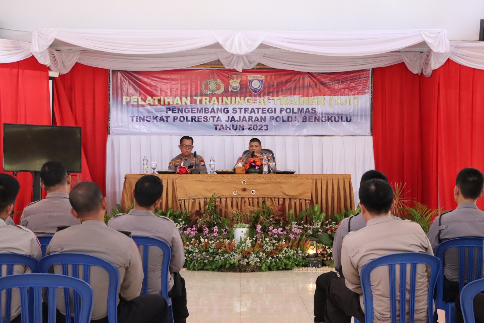 Lebong, Siberindo.co – Ditbinmas Polda Bengkulu, pada Senin (27/2/2023) pagi, mengadakan Pelatihan Training of Trainer (ToT) Pengembang Strategi Polmas Tingkat Polres/ta jajaran Polda Bengkulu Tahun 2023.