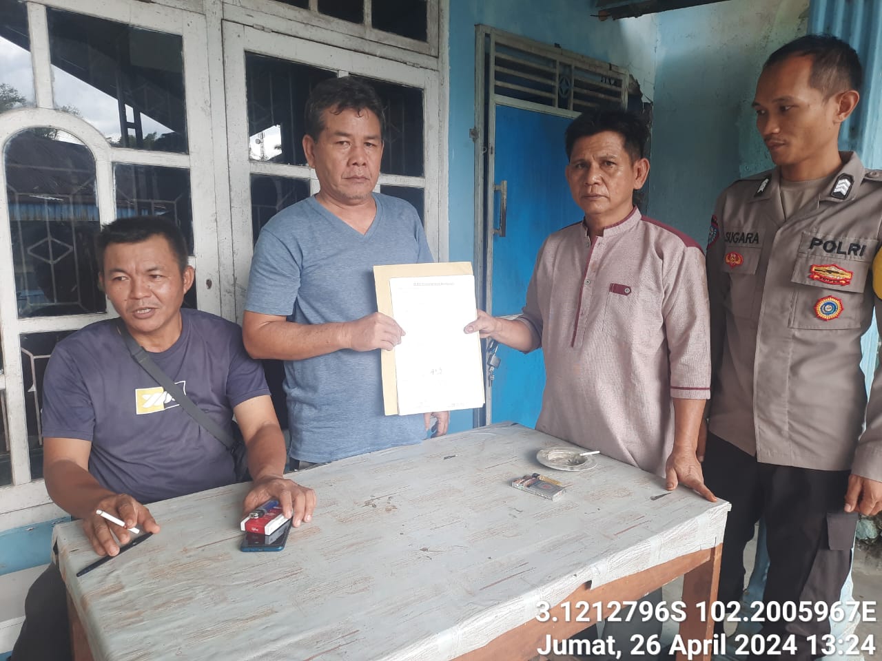 Pada Jumat (26/4/2024), Bhabinkamtibmas melaksanakan problem solving terkait permasalahan pertikaian dan perusakan antara pihak pertama Fahzan Ansori (52), warga Desa Kampung Muara Aman Kecamatan Lebong Utara, dengan pihak kedua Daman Huri (59), warga Desa Kampung Muara Aman Kecamatan Lebong Utara.