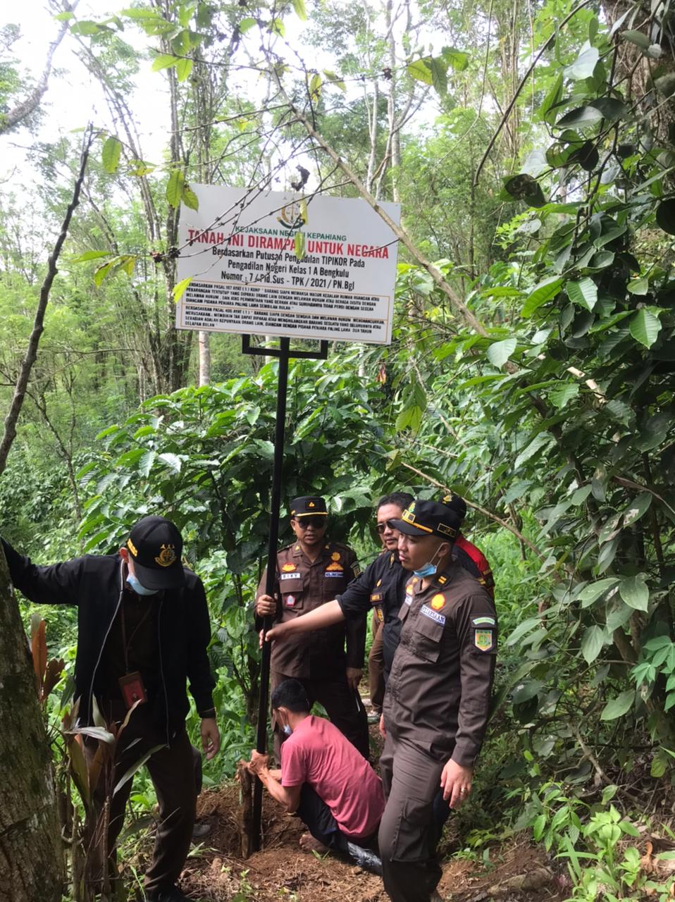 Bengkulu, Siberindo.co – Tim Jaksa Eksekutor Kejaksaan Negeri Kepahiang melaksanakan eksekusi perampasan tiga bidang tanah milik terpidana AR mantan anggota DPRD Kepahiang terkait dugaan kasus Tipikor pengadaan lahan kantor Camat Tebat Karai oleh Bagian Pemerintahan Umum Setdakab Kepahiang TA 2015, Kamis (24/05/2021).
