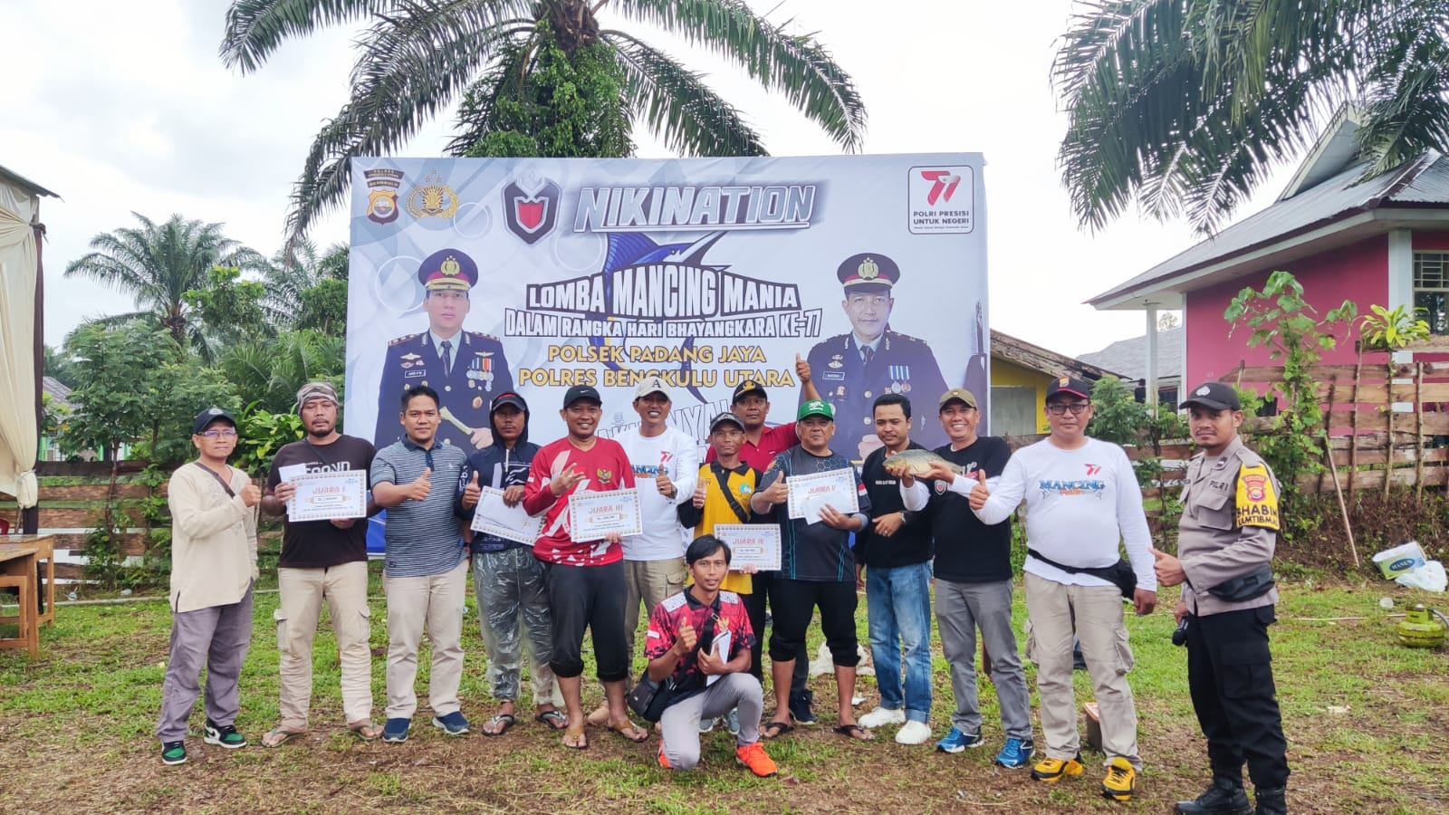 Bengkulu Utara – Polsek Padang Jaya sukses merangkul para angler di Kecamatan Padang Jaya, melalui Lomba Mancing Mania dalam rangka memeriahkan HUT Bhayangkara ke-77 Tahun 2023, Minggu (25/6/2023).