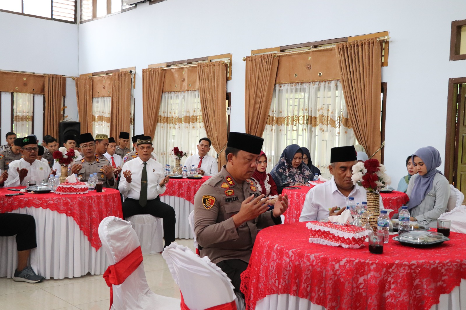 Kegiatan doa bersama ini dipimpin oleh Kapolres Lebong AKBP Awilzan, dan dihadiri tokoh lintas agama, diantaranya Ketua PCNU Lebong, Ketua Muhammadiyah Lebong, Ketua LDII Lebong, Pendeta dari GKII dan Romo Santa Mathius, Ketua FKUB Lebong, MUI, para PJU Polres Lebong, Ketua Bhayangkara Cabang Lebong dan pengurus, serta Kapolsek jajaran dan personel Polres Lebong.