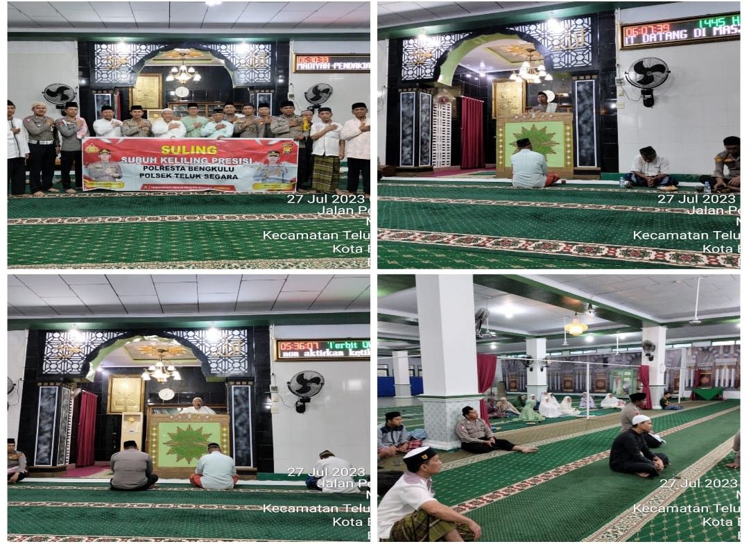 Bengkulu – Polresta Bengkulu kembali menggelar program Subuh Keliling (Suling). Kali ini, Subuh Keliling dilaksanakan di Masjid Agung Muttaqin jalan Pendakian RT. 12 RW 04 Kelurahan Malabro Kecamatan Kota Bengkulu, Kamis (27/07/2023).