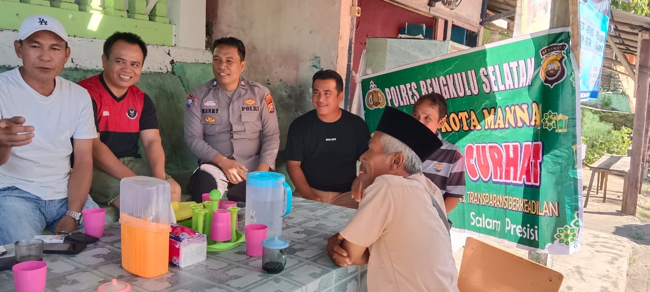 Bengkulu Selatan – Polsek Kota Manna Polres Bengkulu Selatan Polda Bengkulu melakukan banyak cara lebih mengetahui Kehendak dan Hajat masyarakat kepada polisi, seperti yang dilakukan Kanit Binmas dan Bhabinkamtibmas Polsek Kota Manna ternyata berfungsi, faktanya dengan Jumat Curhat tersebut, hubungan baik antara Insan Polri dengan masyarakat di wilayah Hukum Polsek Kota Manna Polres Bengkulu Selatan tersebut selama ini terjalin sangat baik, seperti saat dilaksanakan Jumat Curhat, di Kelurahan Pasar Baru Kecamatan Kota Manna Kabupaten Bengkulu Selatan, Jumat (26/07/24).