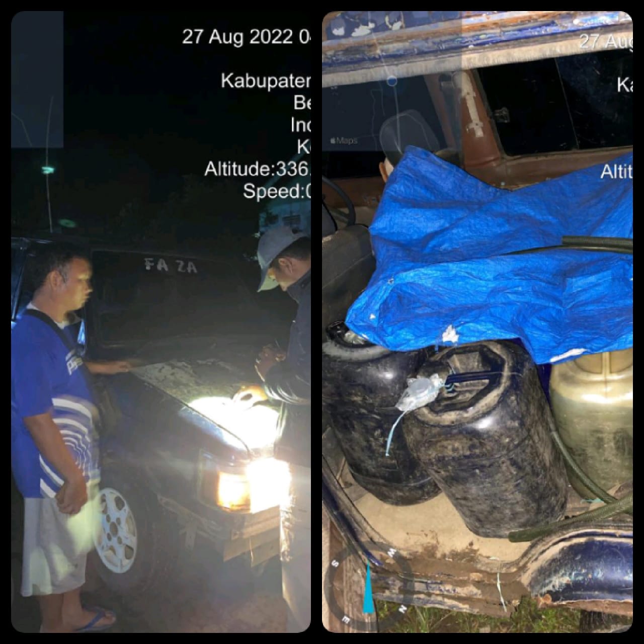 Pada mobil Toyota Kijang super Of 40 Shori warna Fjord Blue bernomor Polisi BD-1015-AQ, petugas berhasil mengamankan, 26 jerigen BBM subsidi jenis pertalite.