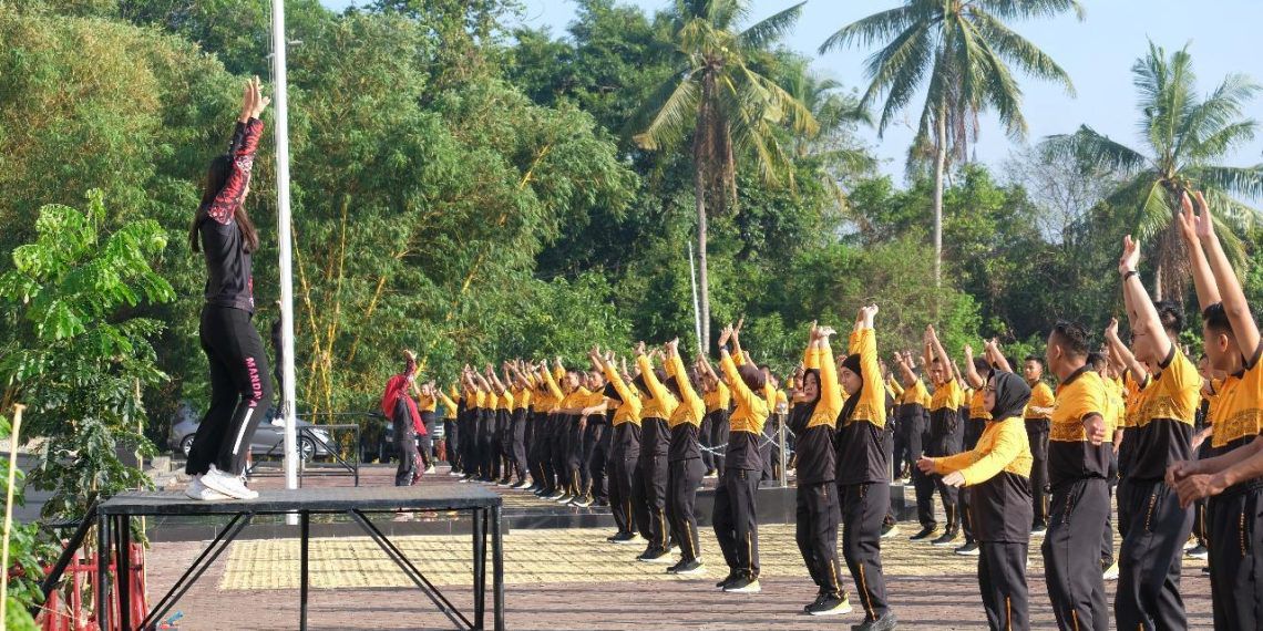 BENGKULU – Polda Bengkulu hari ini menggelar kegiatan senam aerobic di Lapangan Anton Soedjarwo Polda Bengkulu. Kegiatan ini dilakukan sebagai bagian dari upaya untuk menjaga kebugaran dan kesehatan seluruh personel, termasuk pejabat utama.